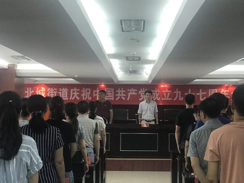 6月29日上午,北城街道召开庆祝中国共产党成立97周年大会,街道各党组织200余名党员参加,会议由该街道办事处主任陈玉泗主持。