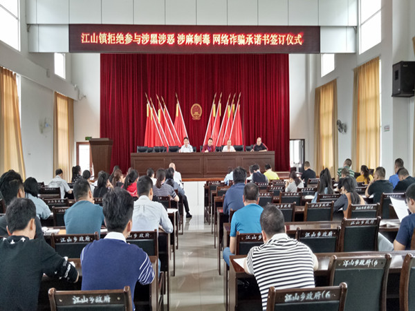 江山镇组织签订拒绝参与涉黑涉恶、涉麻制毒、网络诈骗承诺书